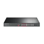 • 16× PoE+ 10/100 Mbps RJ45 ports, 2× Gigabit RJ45 ports, and 2× combo Gigabit SFP slots.