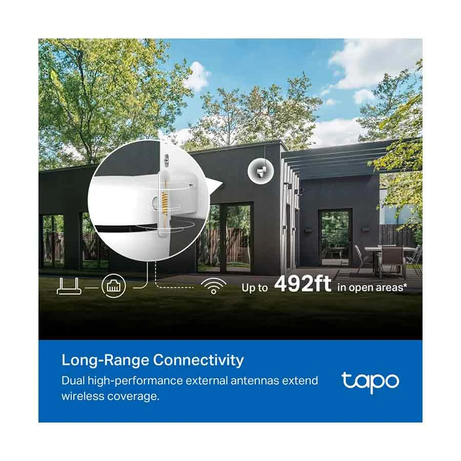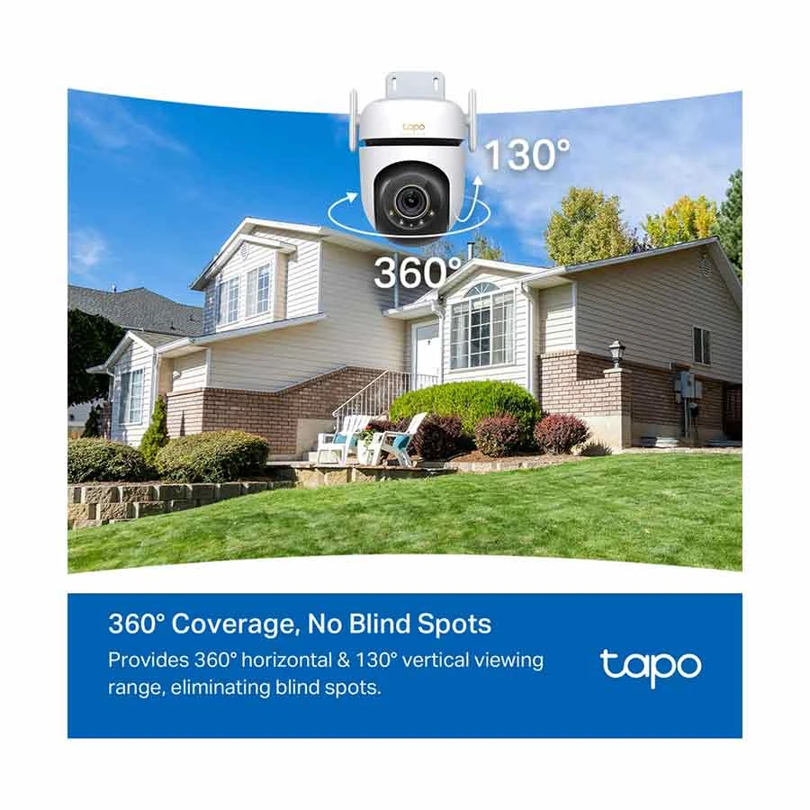 3K 5MP Live View-Adopting a 2880 x 1620 resolution, Tapo offers enhanced video quality to see more details. Starlight Color Night Vision-Enhances your security by revealing brighter, full-color images and vivid details even in low-light conditions with built-in spotlights and the starlight sensor. 360 Degree All-Round Protection-Enjoy 360 Degree horizontal and 130 Degree vertical views with motion tracking to eliminate blind spots. Activate patrol mode to cruise among multiple custom points. Comprehensive AI Detection-Smart AI accurately identifies people, pets, and vehicles while featuring tamper and line-crossing detection, minimizing false alerts and unnecessary notifications. Flexible Connections & Reliable Networking Connect your camera via Wi-Fi or Ethernet for flexible installation. Powerful dual antennas ensure connectivity up to 492ft in open areas. IP66 Weatherproofing-Offers excellent waterproof and dustproof performance for outdoor scenarios. It works well in rain, dust, and heat. Customizable Sound and Light Alarm-The ultra-bright adjustable light deters unwanted visitors, while custom audio alarms offer further use. Two-Way Audio-Enables communication through a built-in microphone and speaker.