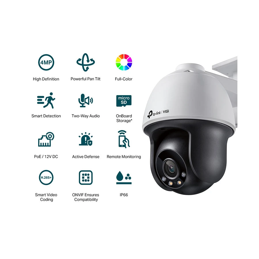 The camera comes with 4MP more than enough pixels to pick up some of the more discrete details, Obtain 24-hour color details, even in pitch-black conditions, via high-sensitivity sensor and included spotlight LEDs, Customized patrol routes and auto tracking provide more intelligent options to monitor key areas and improve security within your property, Reliable IP66 for stable outdoor performance, Smart Detection (human detection, motion detection, area intrusion, line-crossing, video tampering): Receive notifications and check feeds when someone crosses a boundary, enters an area you`ve set, or obstructs the camera, Manage your security from the palm of your hand with the VIGI app.